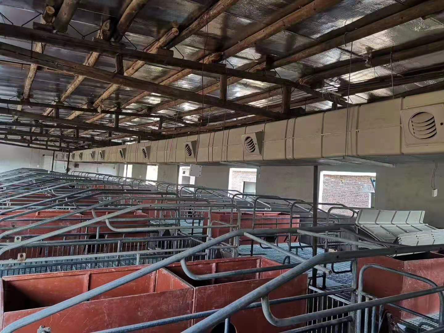 濕簾冷風(fēng)機管道出風(fēng)口位置能使溫度降低4-10℃,在設(shè)計時只需考慮采取定位送冷風(fēng)的方式,使風(fēng)口只對母豬定位欄吹涼風(fēng),而對旁邊活動的仔豬則完全不影響,從而達(dá)到母豬定點降溫與節(jié)能的良好效果。